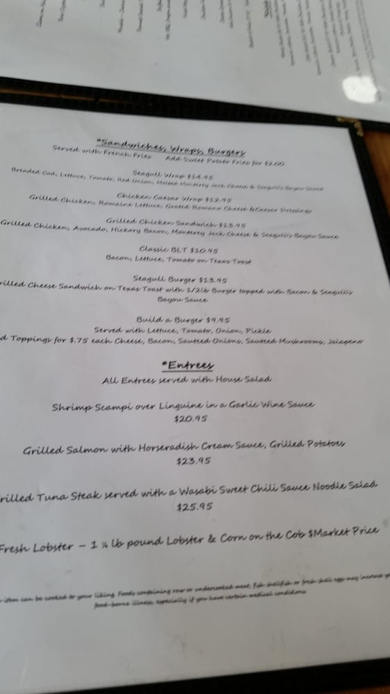 Seagull Restaurant and Bar is a hidden gem on Long Island's South Shore, offering a dockside dining experience with stunning water views. The atmosphere is inviting, with friendly service and a laid-back vibe. The menu features a variety of seafood dishes, including appetizers like clams on the half shell and shrimp cocktail, as well as main courses like the Seagull Wrap and grilled chicken sandwich. Customers rave about the delicious burgers and salads, with the Cobb Salad being a favorite. The bar offers creative cocktails and a full selection of drinks. With outdoor seating, accommodating staff, and a picturesque setting, Seagull Restaurant and Bar is the perfect spot for a relaxing meal by the water.